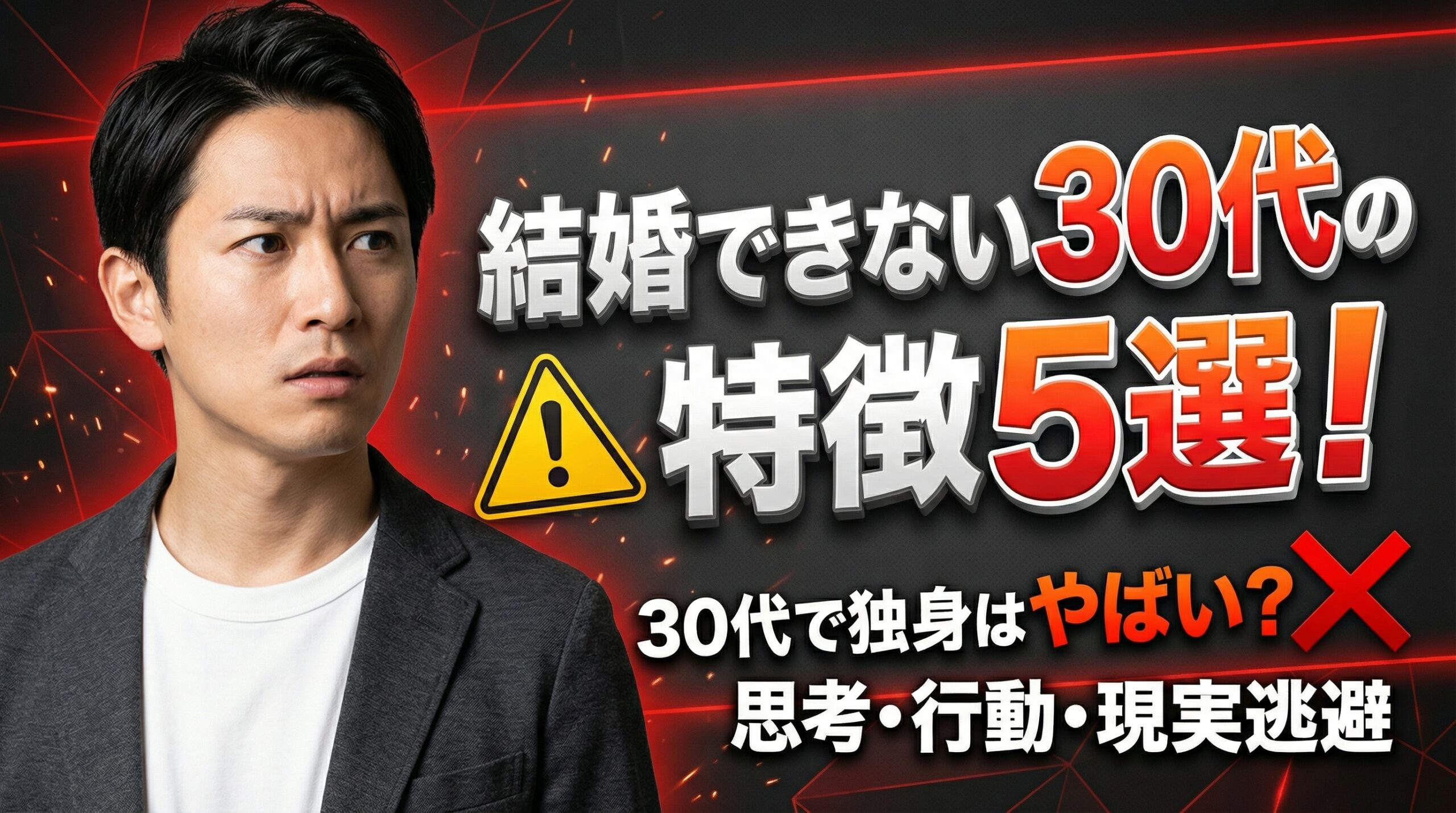 この記事では、「結婚できない30代男性の特徴5選」と題して、婚活においてつまずきやすい行動・思考のパターンを徹底解説します。
